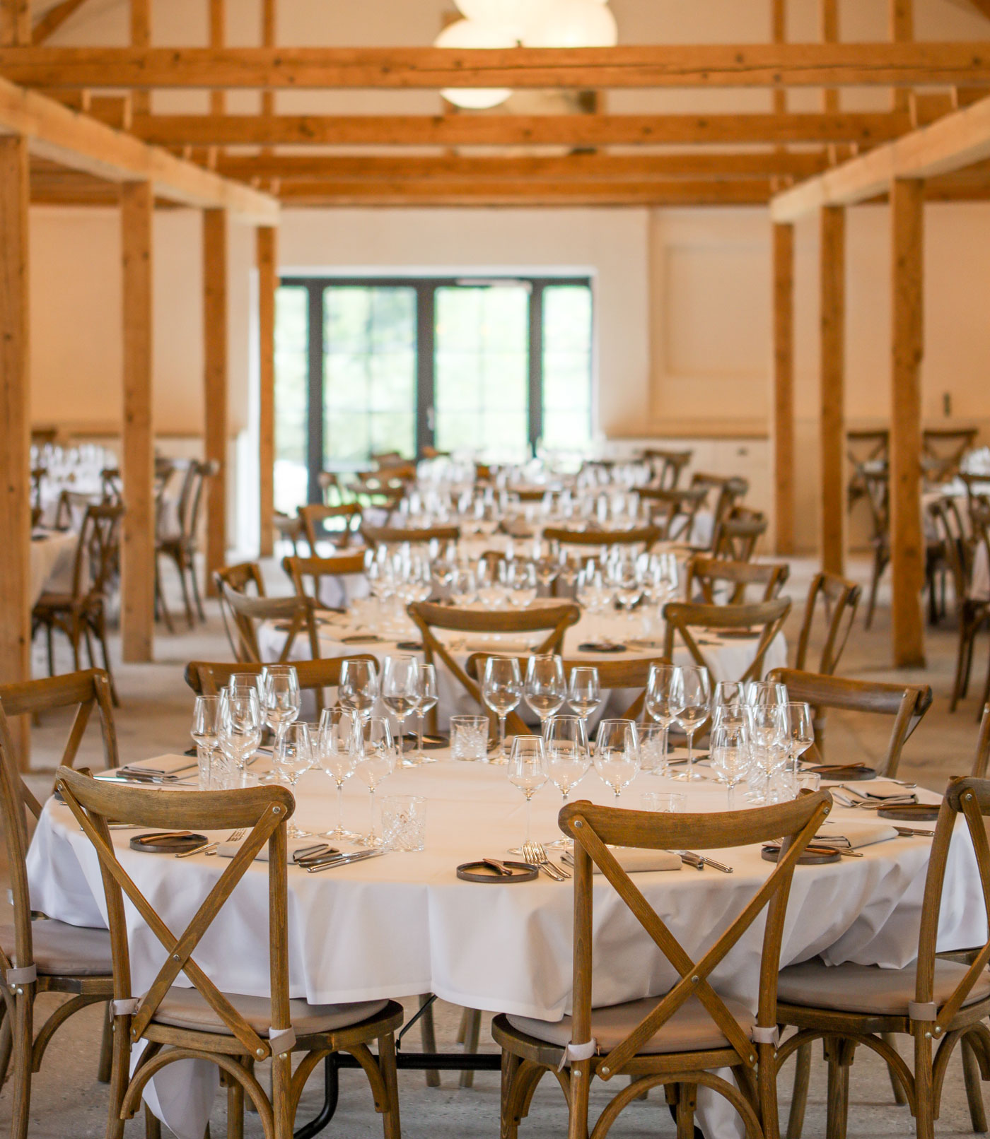 Vores bryllupslokaler rummer op til ca. 120 gæster og forener de historiske staldmiljøer med lyse, moderne detaljer og store glaspartier, der giver udsigt til gårdsplads, have og grøn natur. Her får I en elegant og varm atmosfære, der understøtter både den intime vielse og den festlige bryllupsmiddag.