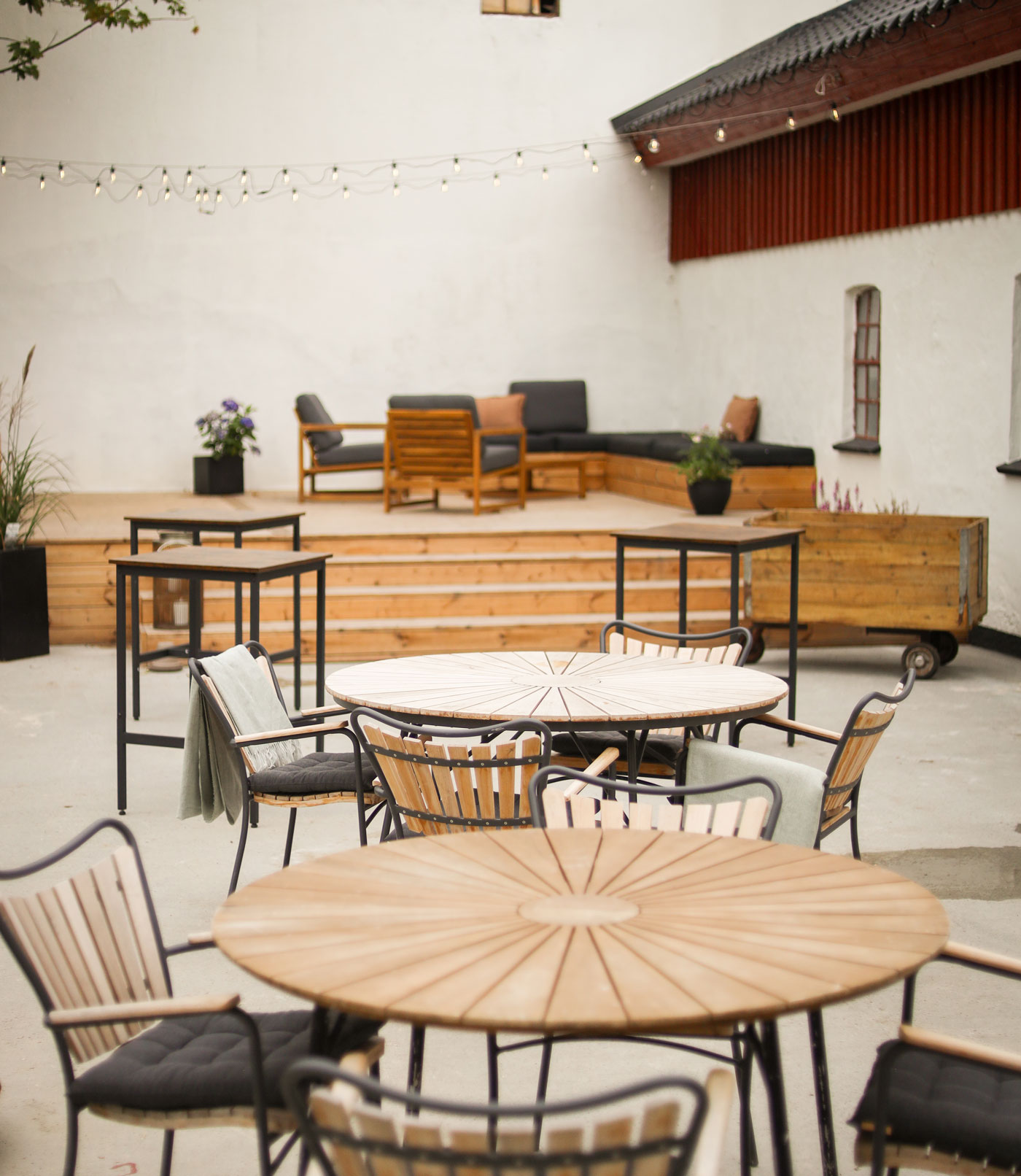 Gårdhaven og terrassen er oplagte til reception, velkomstdrinks og bryllupsfotos — og med mulighed for telt eller sejl skaber vi trygge, fleksible rammer uanset vejret.